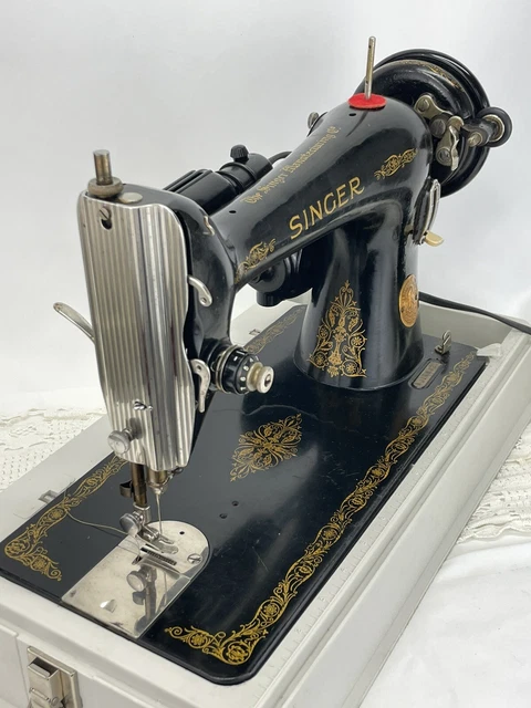 Serviced Heavy Duty Vtg Singer 66 Sewing Machine Denim Leather Ornate Gold Black 329 06 Picclick Uk